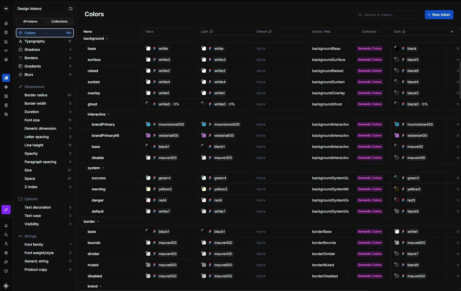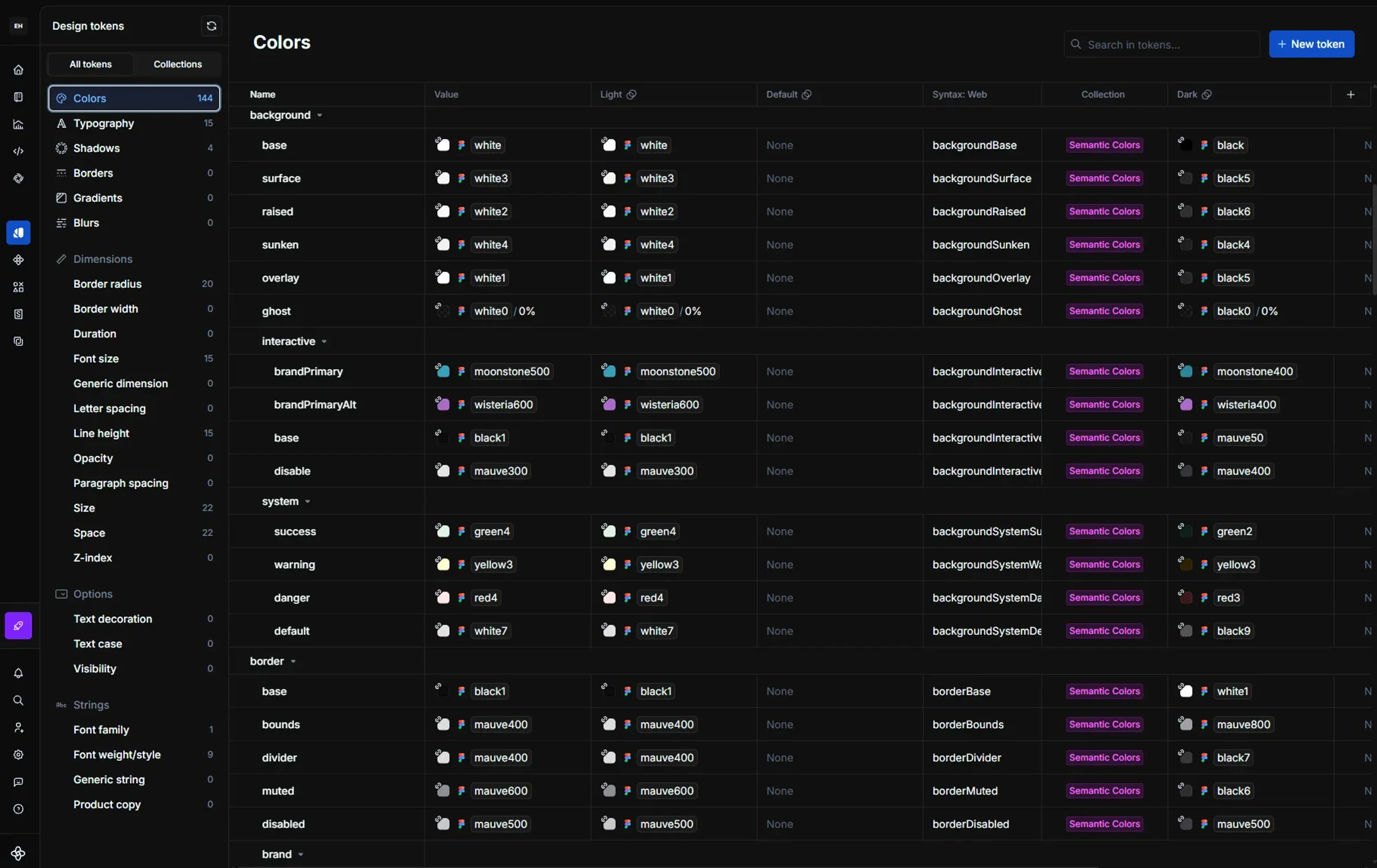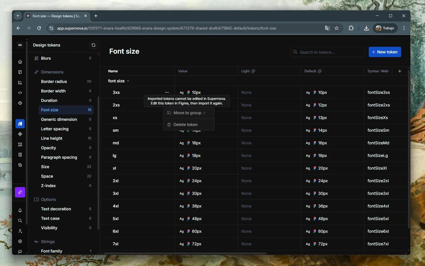The table view in Supernova is legitimately better than Figma’s variables panel. Cleaner, more readable, better for reviewing token relationships at a glance.
