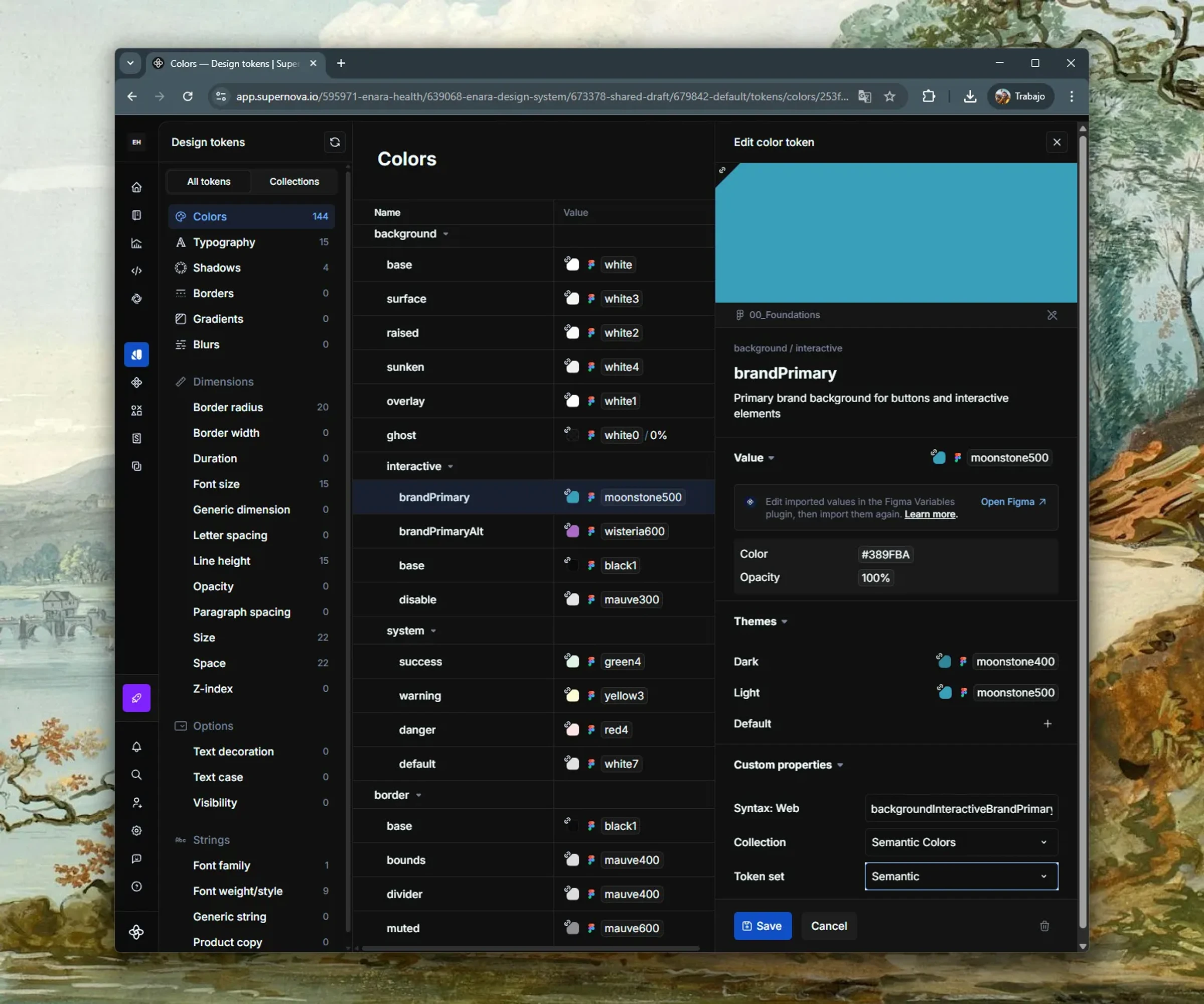 The plugin syncs Figma variables and converts them to Supernova’s token model.