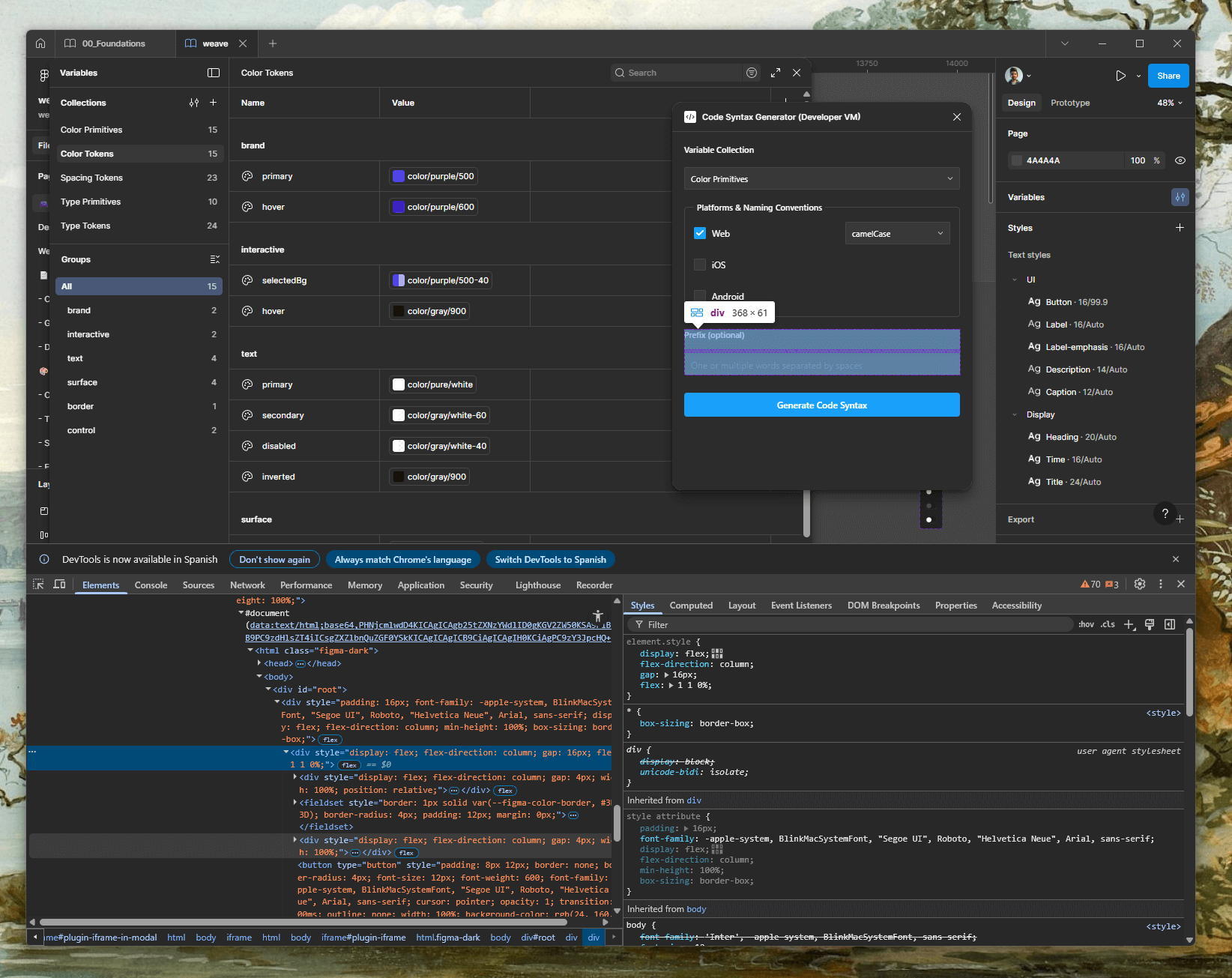 The actual plugin code took maybe 10 to 15 minutes. It processes variable collections, handles normalizing naming conventions and prefixes for Web, iOS and Android.